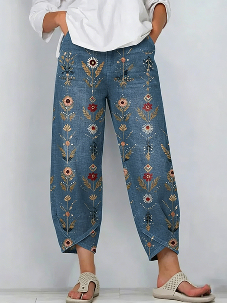 Women's Bohemian Style Floral Geometric Art Casual Linen Pants