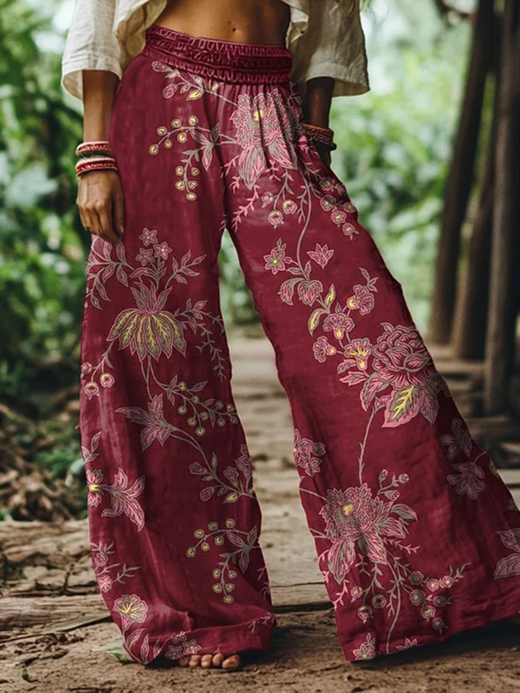 Women's Vintage Bohemia Floral Pattern Linen Blend Casual Pants