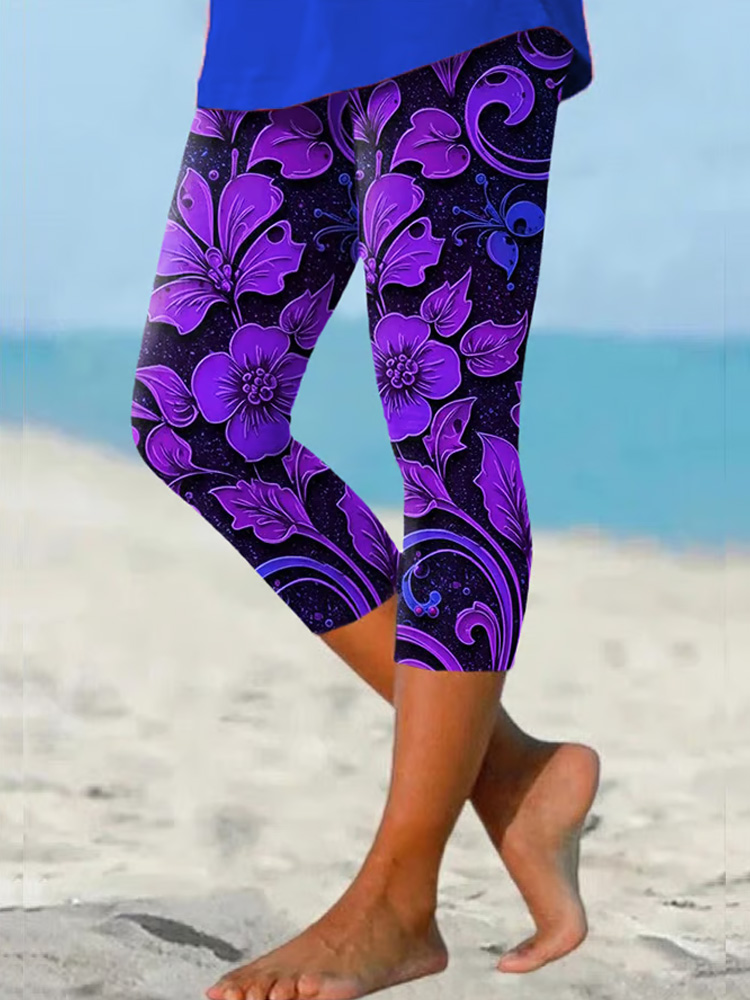 Retro Vintage Floral Art Pattern Cropped Casual Pants