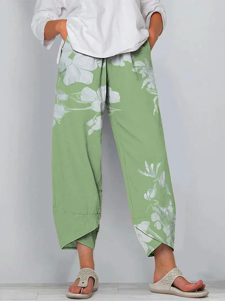 Vintage Floral Pattern Women's Linen Blend Casual Pants