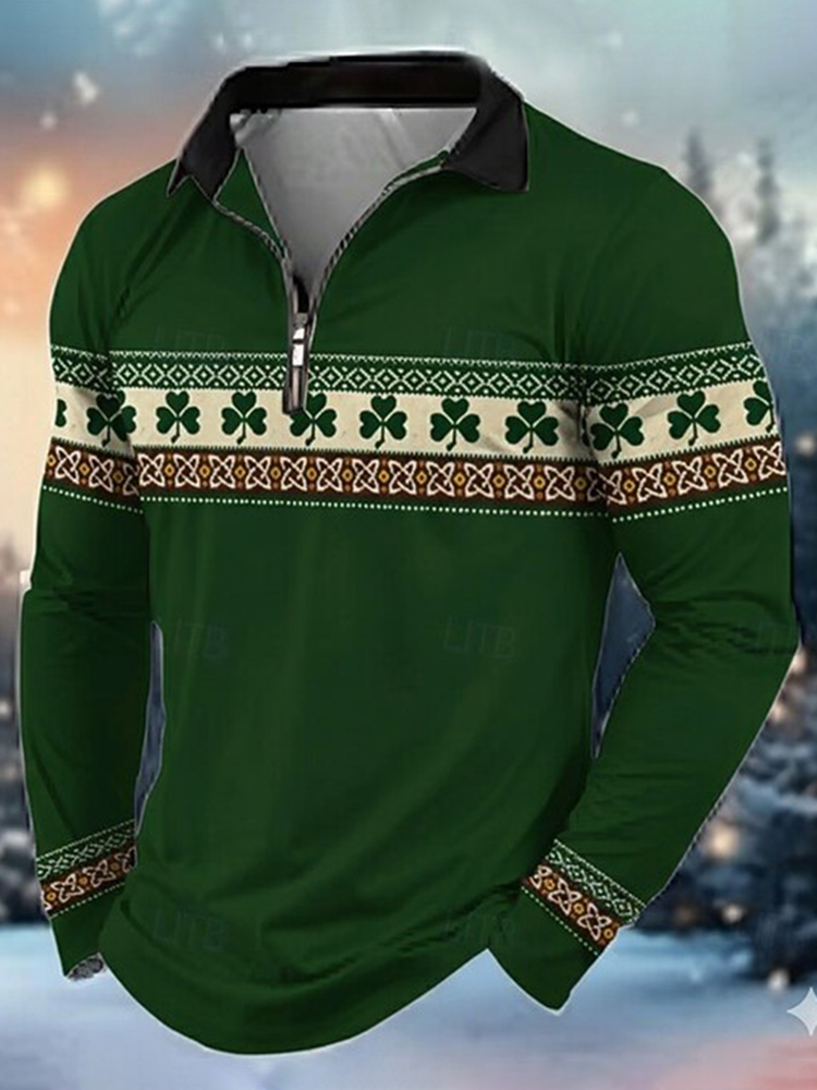 Men's St. Patrick's Day Shamrock Stripe Art Long-sleeved Shirt