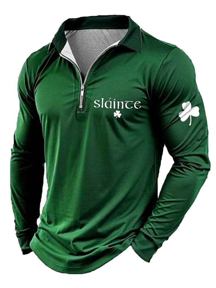Men's Beer Saint Patrick Day St. Patrick's Day Zipper Up Polo Shirt