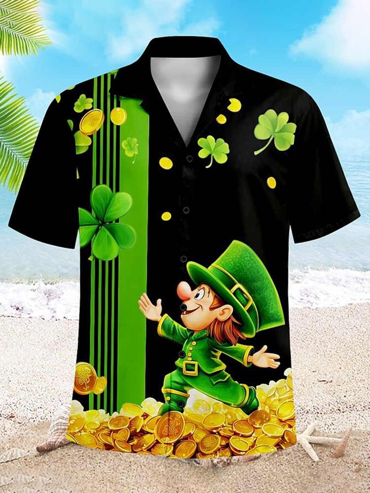 Men's Retro Shamrock Gold Coin Print Button Up Shirt
