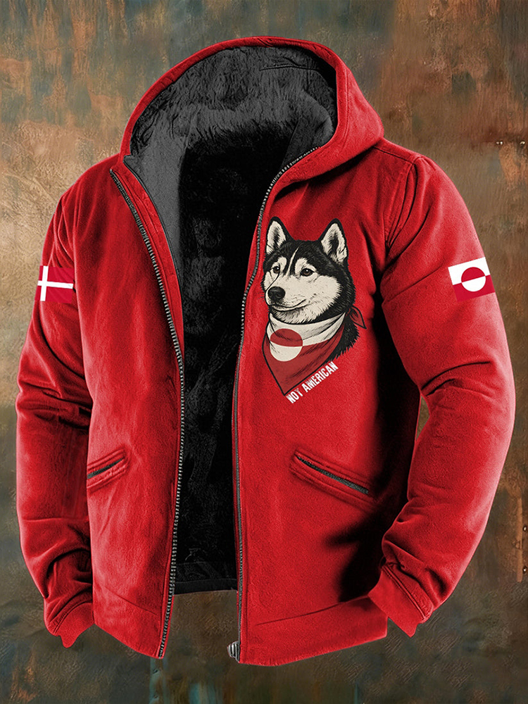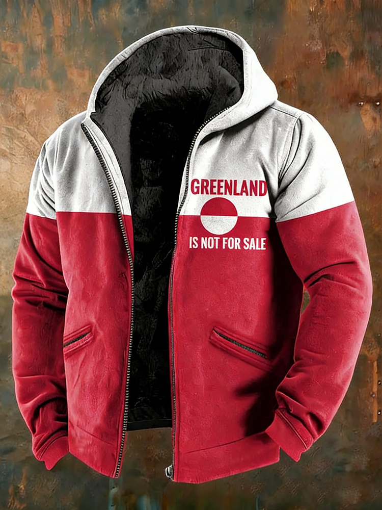 Men's Retro Greenland Not For Sale Print Zipper Casual Jacket