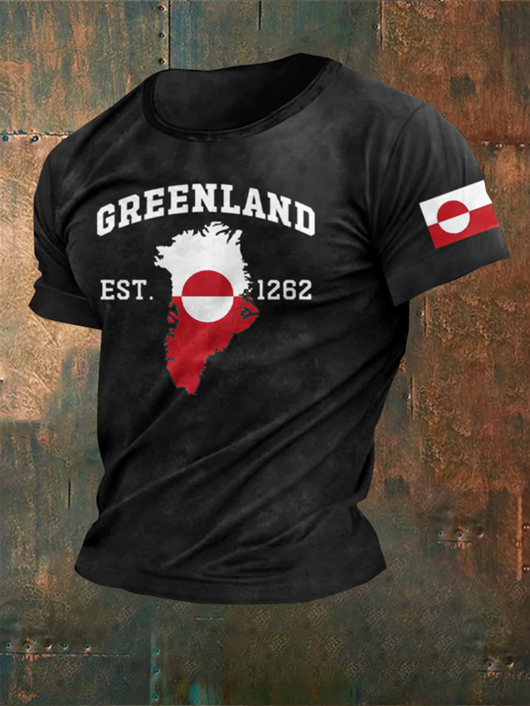Men's Vintage Greenland Print Short Sleeve Casual T-shirt