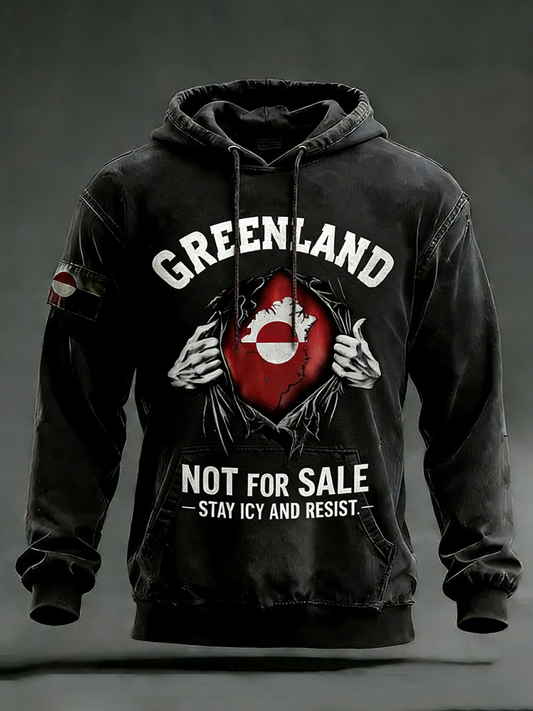 Men's Retro Greenland Not For Sale, Stay Icy And Resist Hoodie