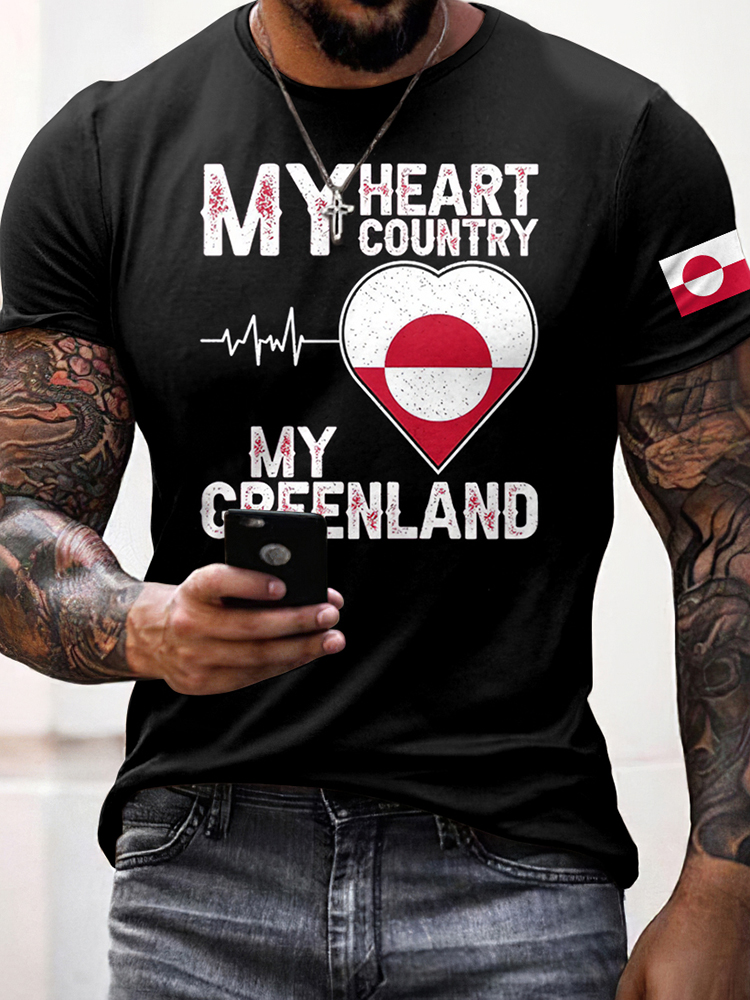 Men's Greenland Heartbeat Flag Print Short Sleeve Casual T-shirt