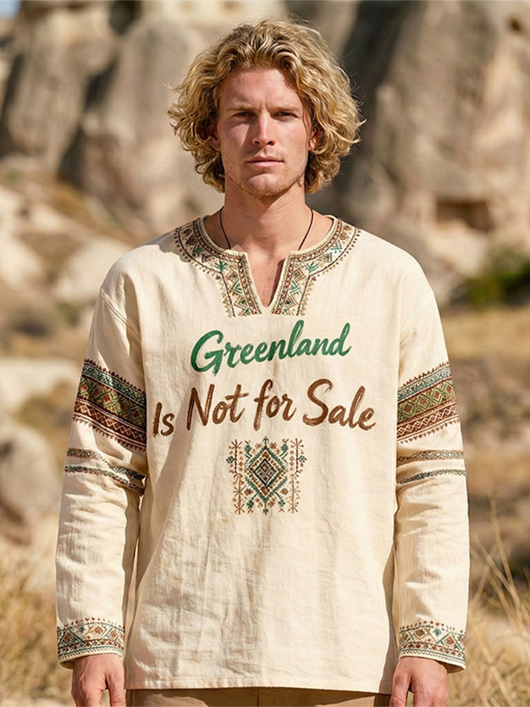 Men's Vintage Greenland Print Long Sleeve Casual T-shirt