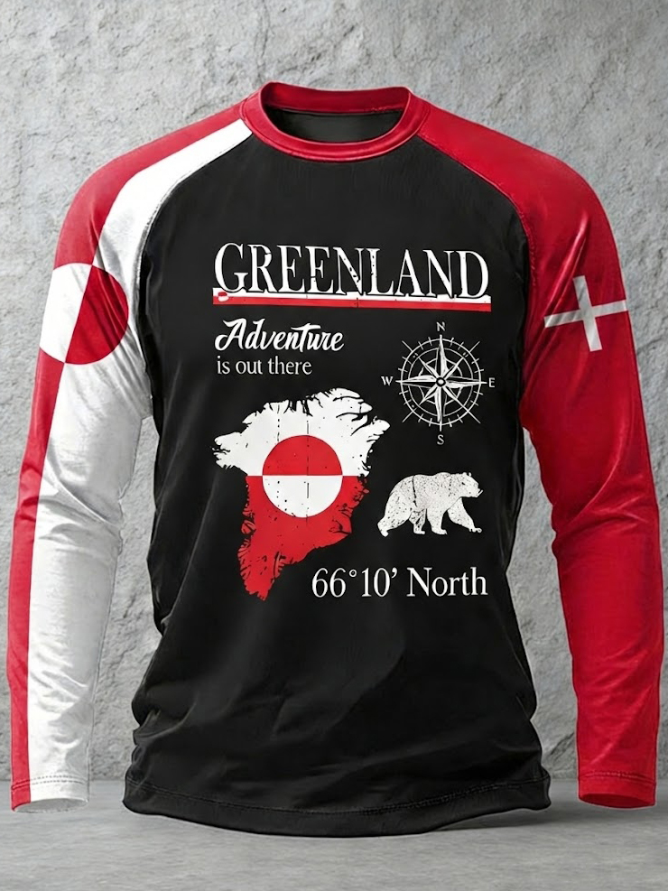 Men's Greenland Print Crew Neck Long Sleeve Casual T-shirt