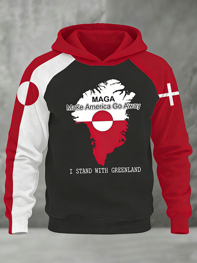 I Stand With Greenland Colorblock Print Men's Hooded Sweatshirt