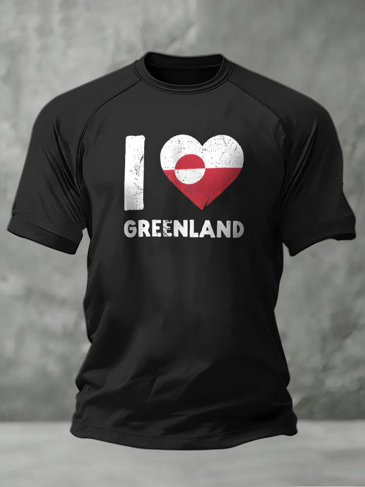 Men's I Love Greenland Print Short Sleeve Casual T-shirt