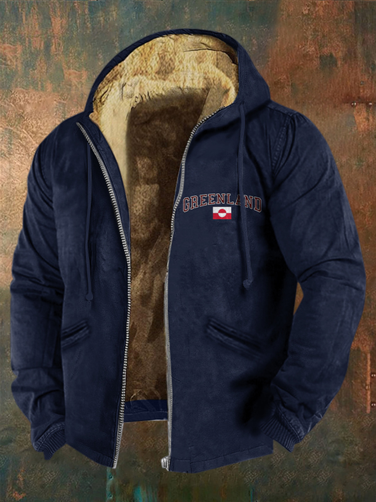 Men's Greenland Print Casual Zip Up Hooded Jacket