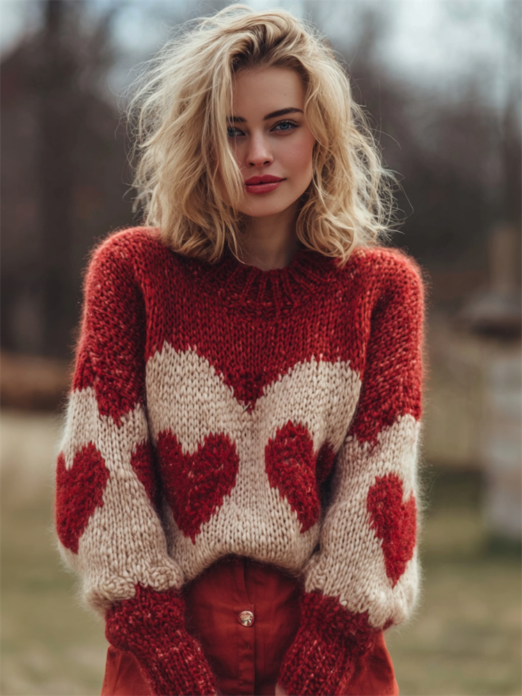 Women's Valentine's Day Heart Pattern Comfortable Knit Sweater