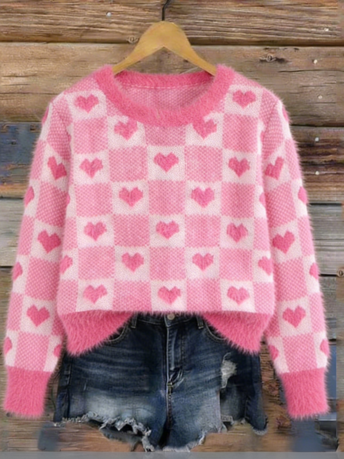 Vintage Valentine's Day Hearts Pattern Cozy Knit Sweater
