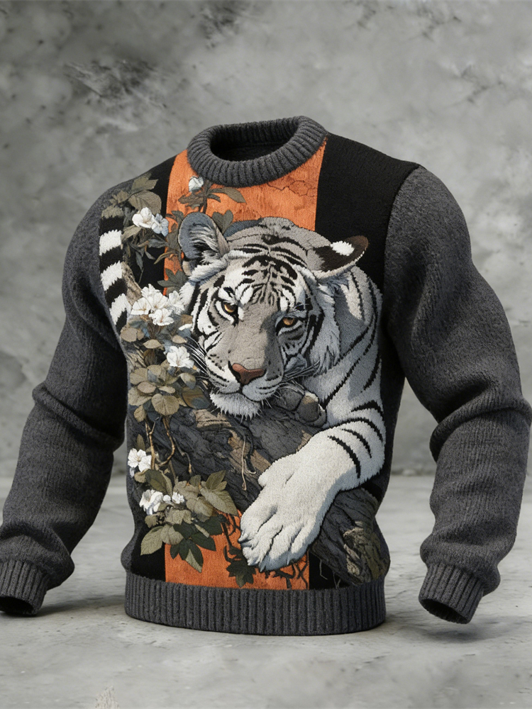 Vintage Fierce Tiger Comfortable Crew Neck Sweater