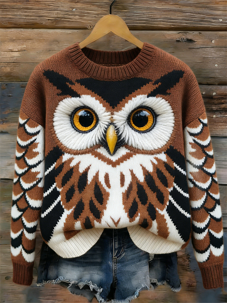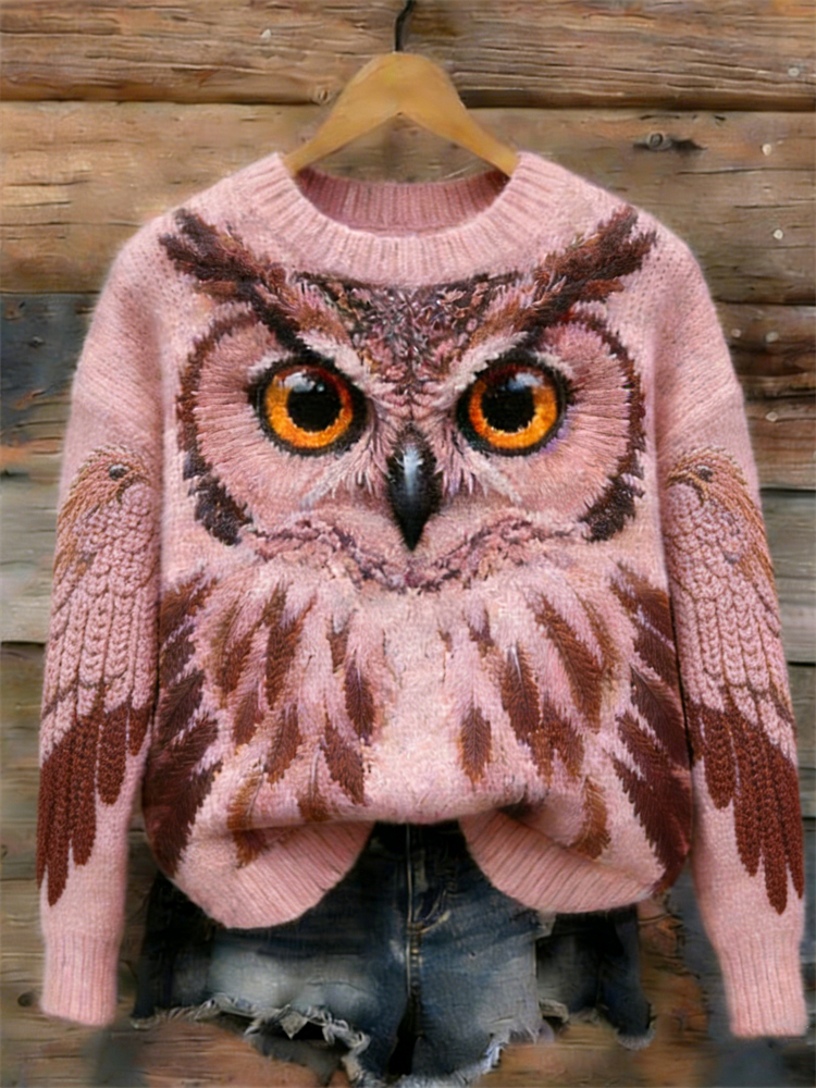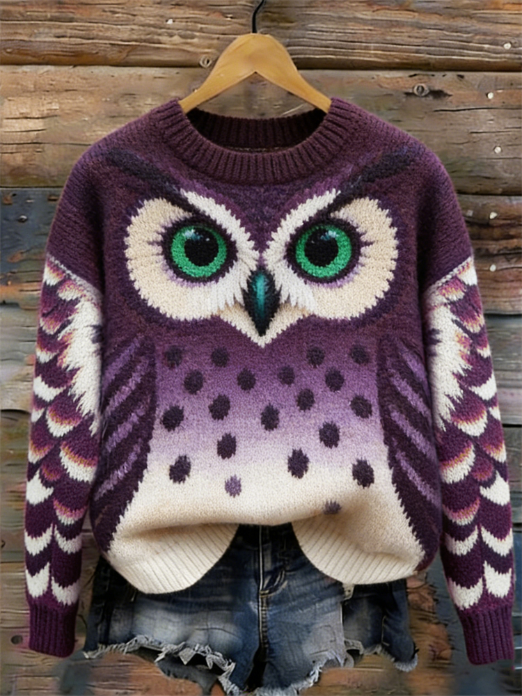 Vintage Forest Owl Inspired Cozy Knit Sweater