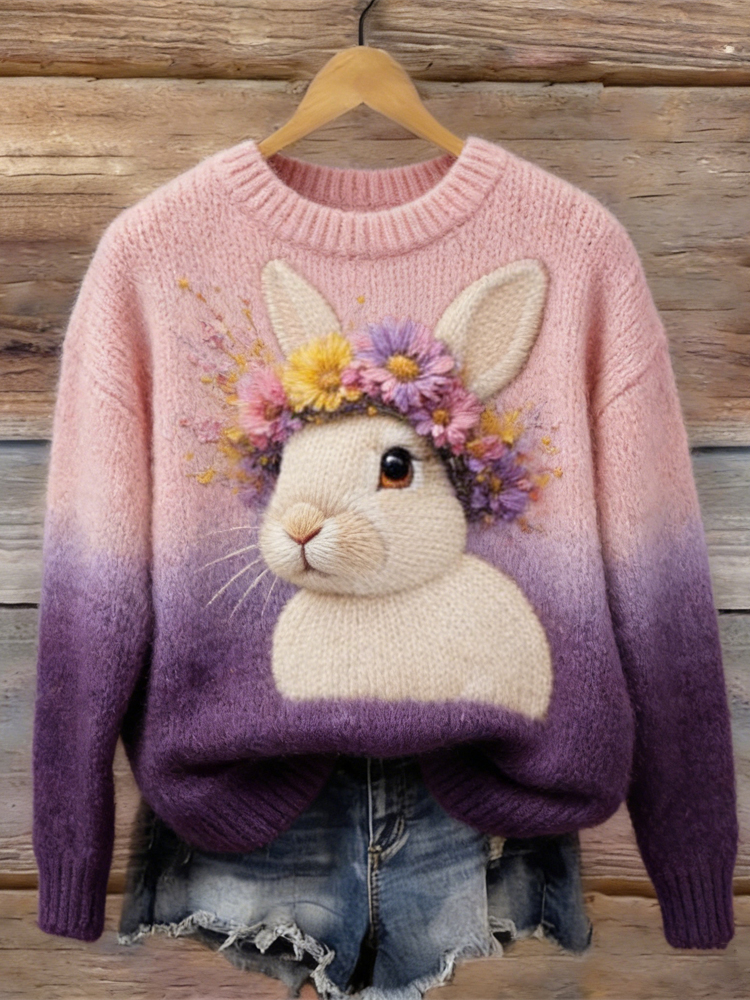 Valentine's Day Bunnies & Hearts Cozy Knit Sweater