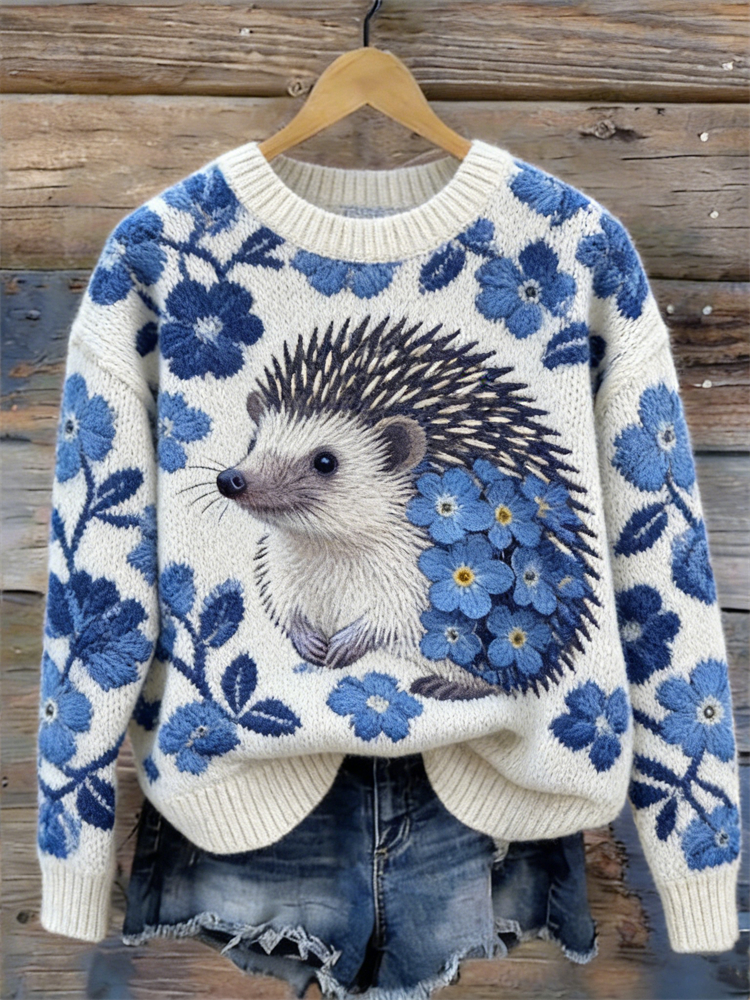 Lovely Forest Hedgehog Inspired Cozy Knit Sweater