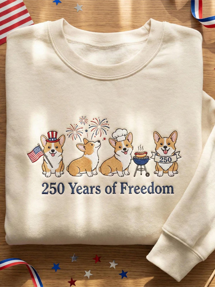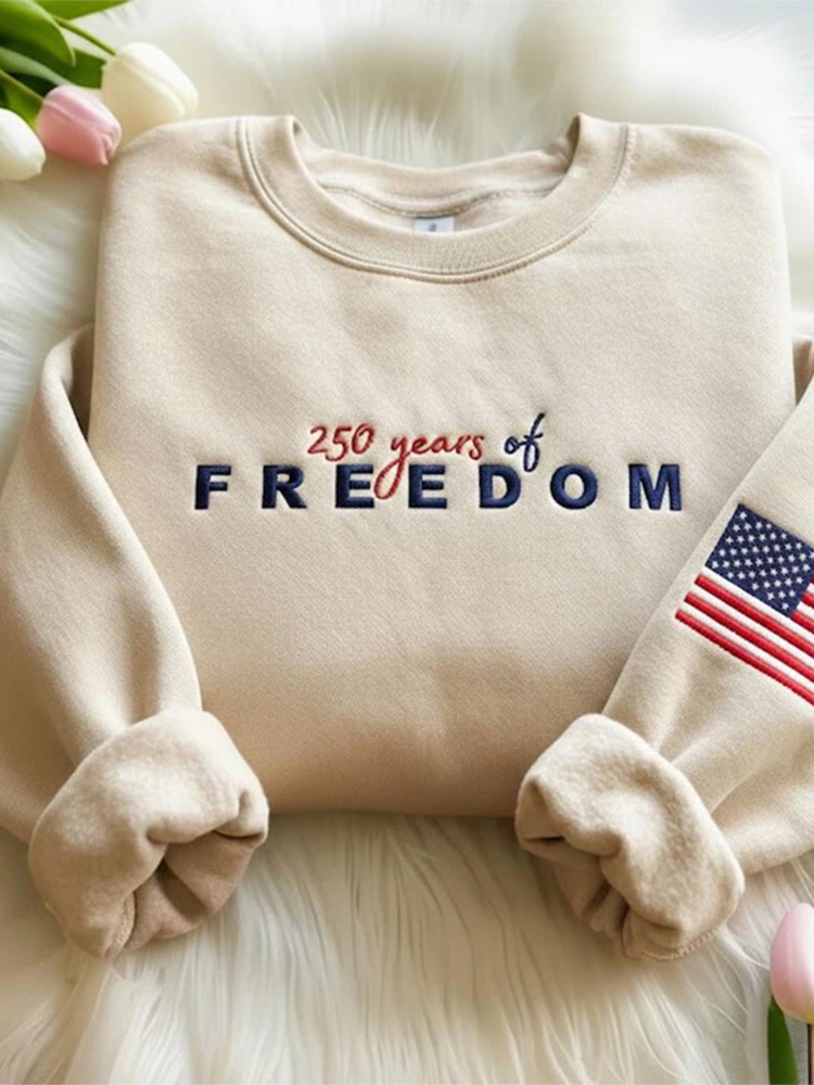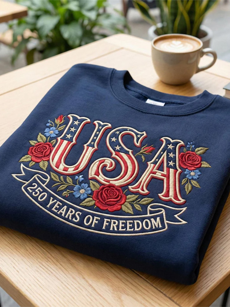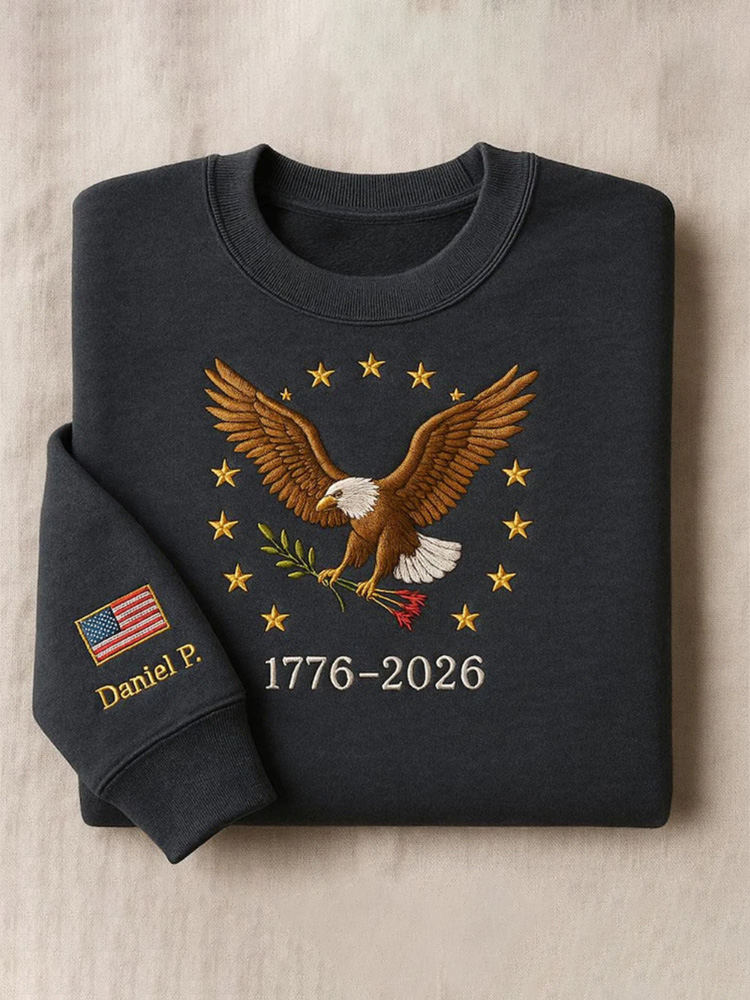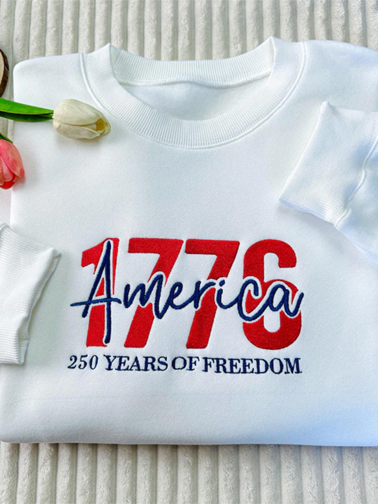 Embroidered American Crewneck, Usa 250 Years Patriotic Sweatshirt
