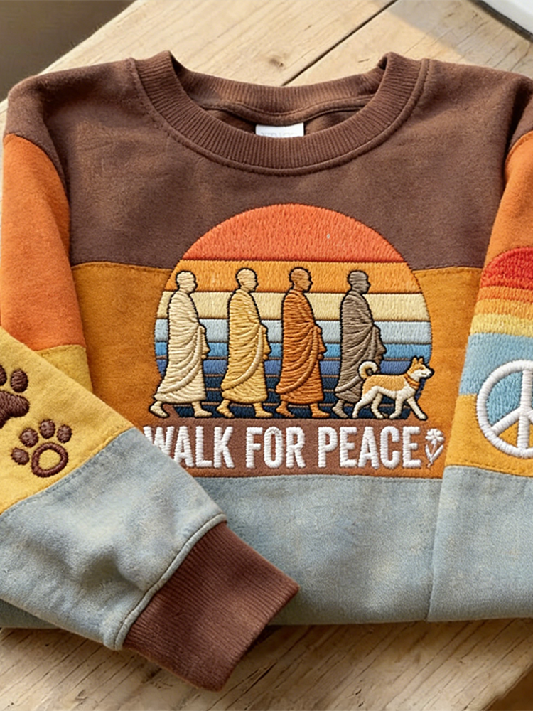 Peaceful Walking Art Exquisite Embroidery Round Neck Sweatshirt