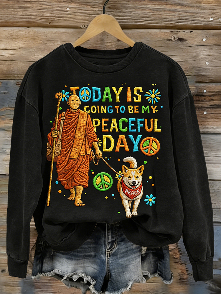 Today Is Going To Be My Peaceful Day Monk And Peace Dog Washed Sweatshirt