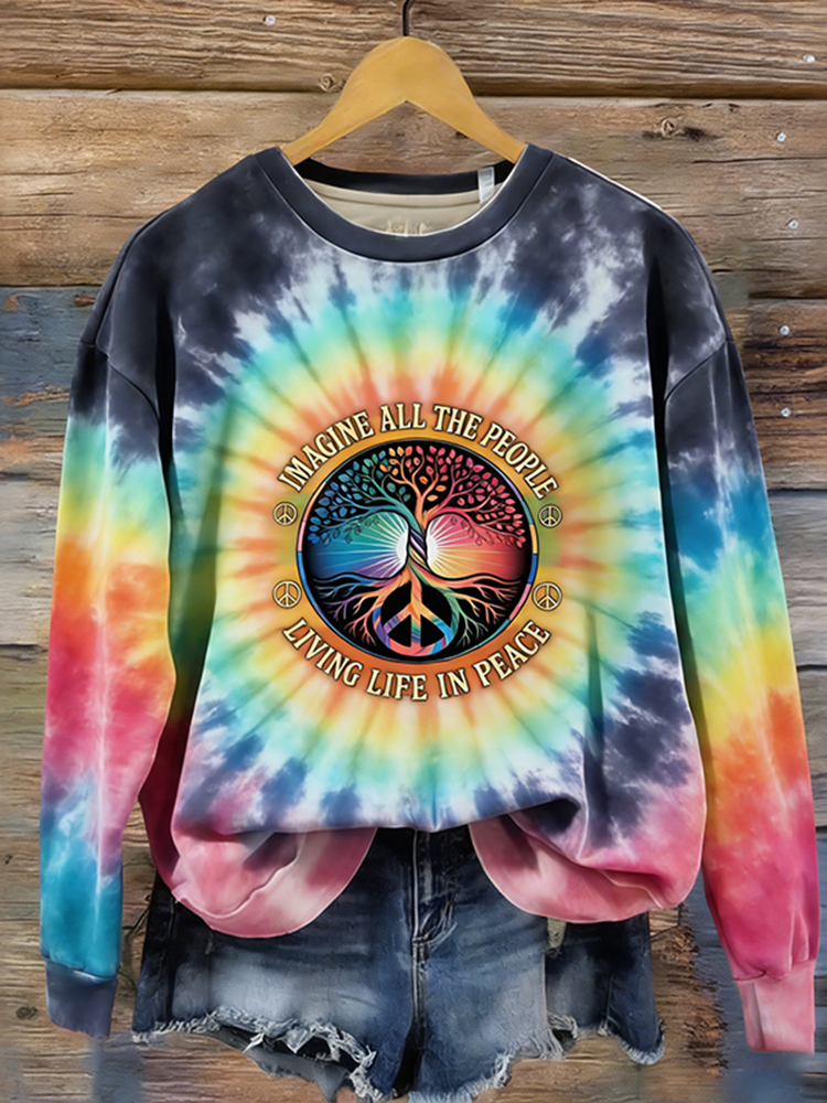 Walk For Peace Love In Every Step Tie-dye Crew Neck Sweatshirt
