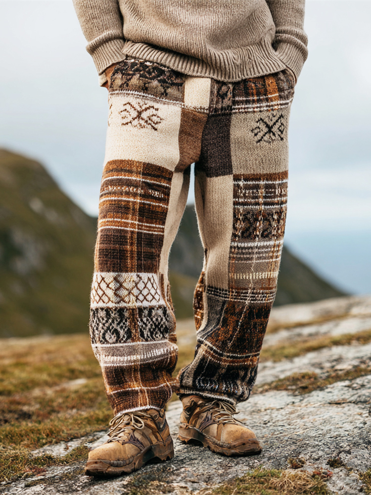 Vintage British Tartan Patchwork Pattern Men's Knit Trousers