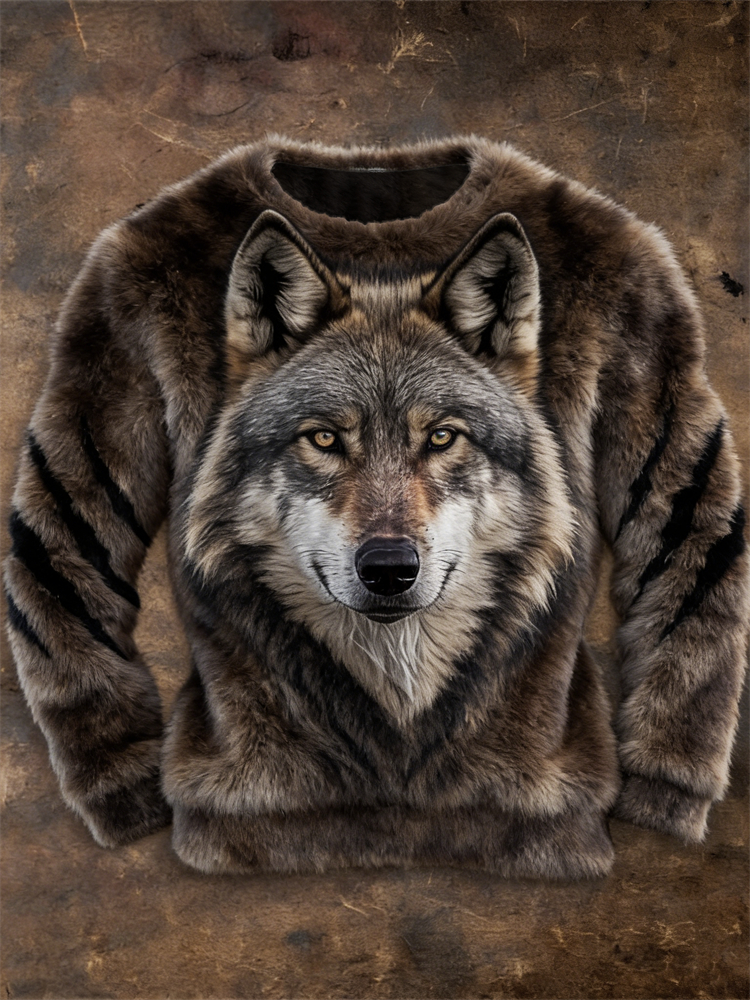 Men's Wild Wolf & Scratch Cozy Plush Sweatshirt