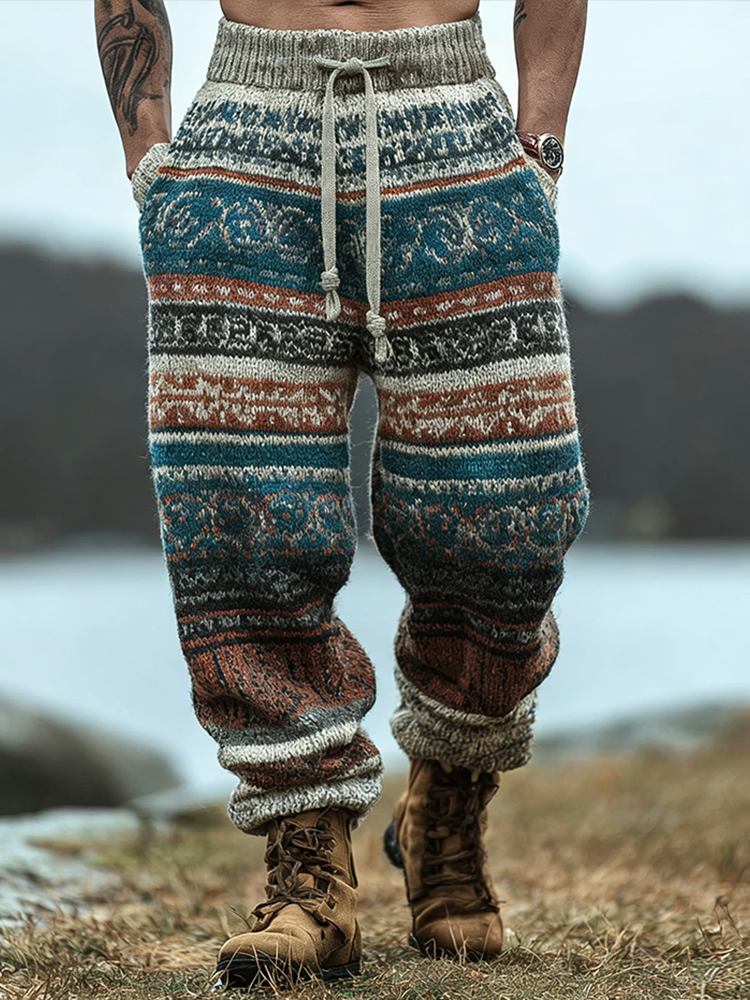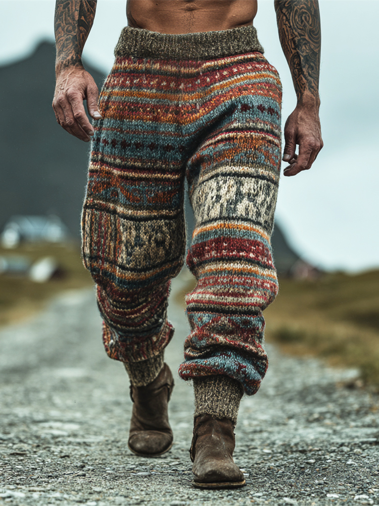 Vintage Stripe Patchwork Pattern Men's Knit Trousers