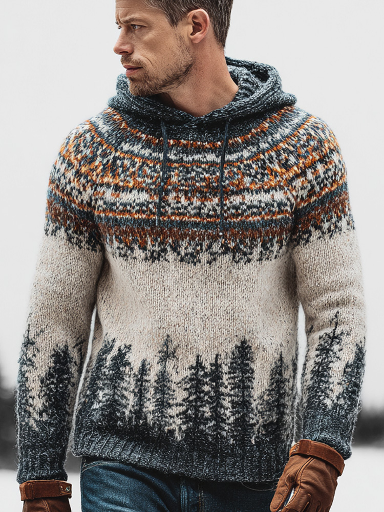 Vintage British-style Design Men's Icelandic Hooded Sweater