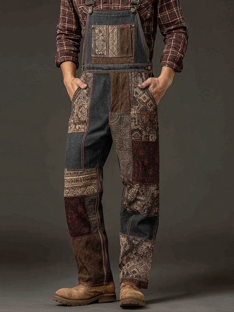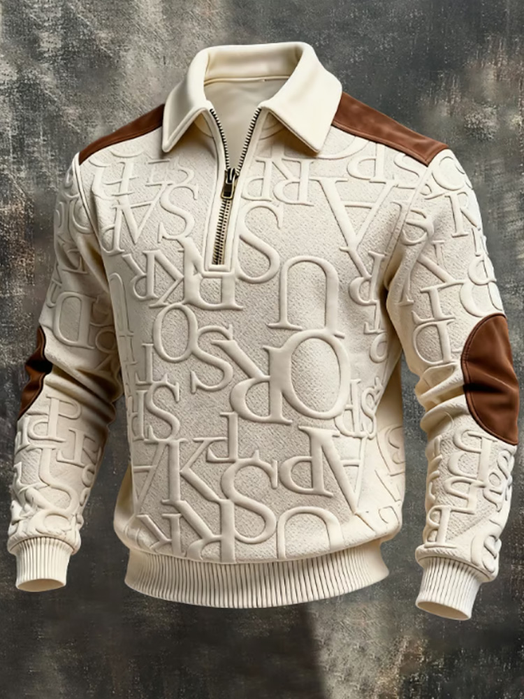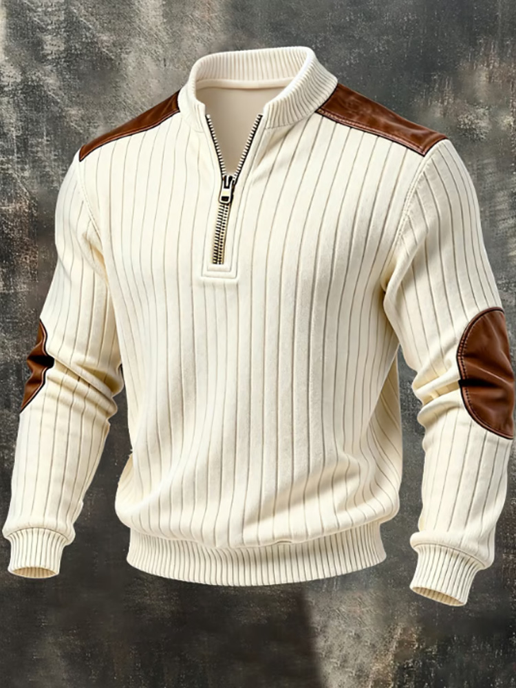 Men's Vintage-style Textured Patchwork Color-block Long-sleeved Sweatshirt