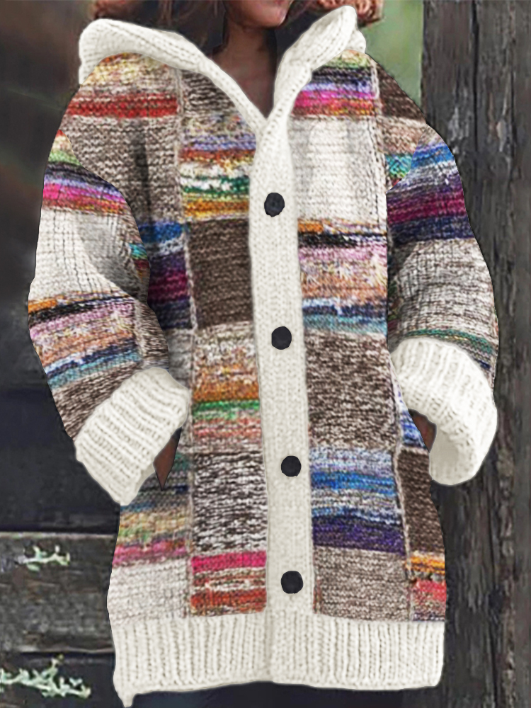 Vintage Heather Colorblock Patchwork Cozy Hooded Cardigan
