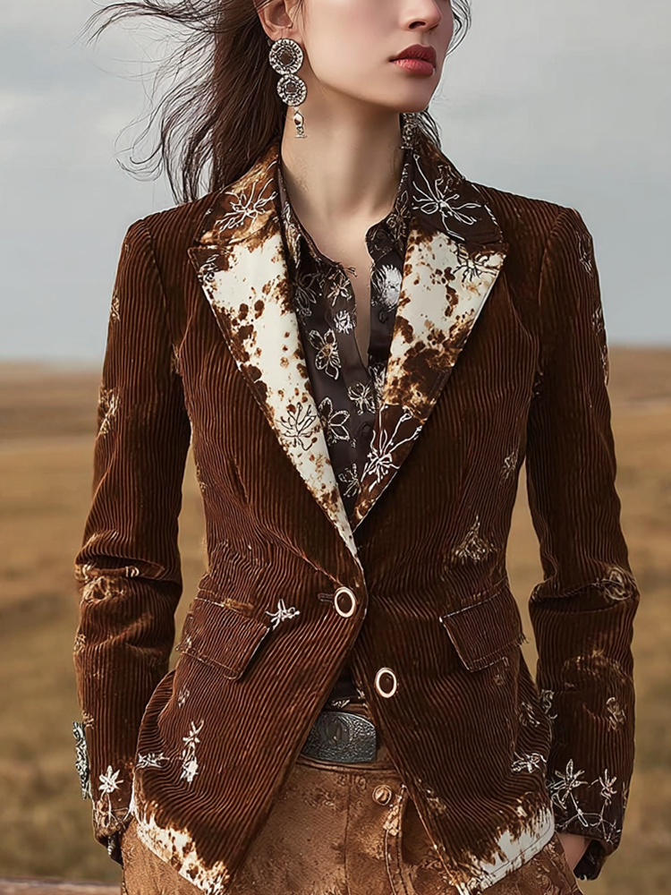Lady Retro Western Style Rendering Design Corduroy Suit Jacket