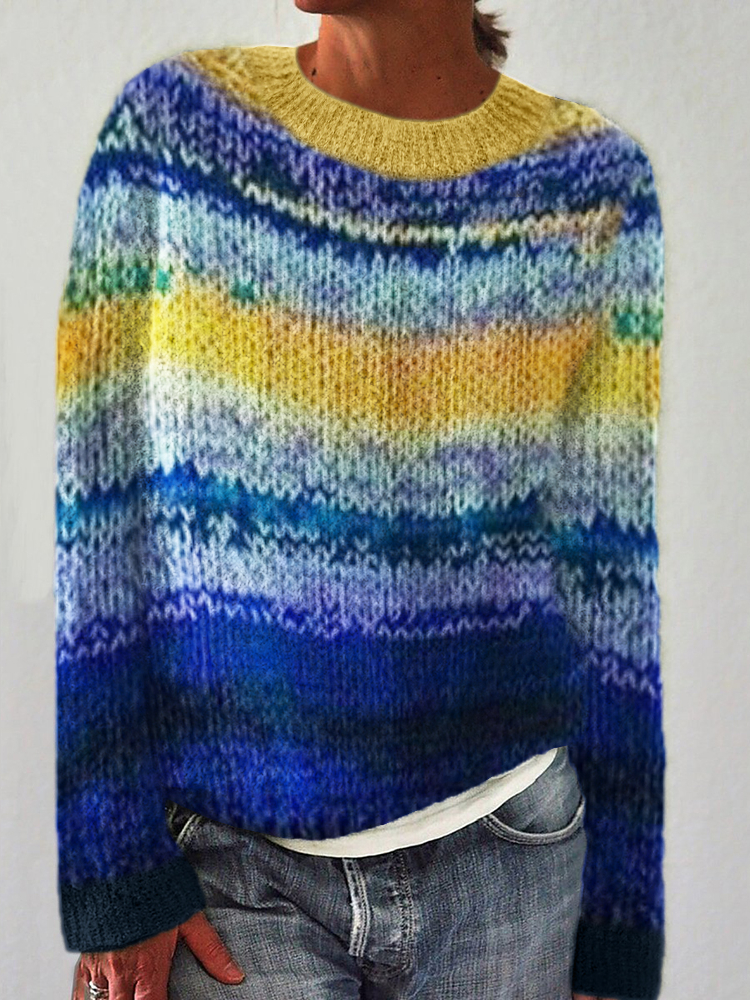 Starry Oil Painting Inspired Gradient Knit Cozy Sweater