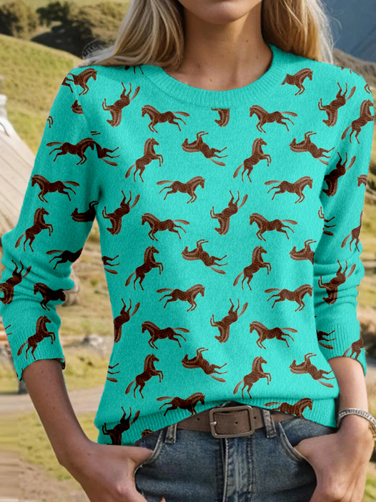 Vintage Western Horses Art Cozy Knit Sweater