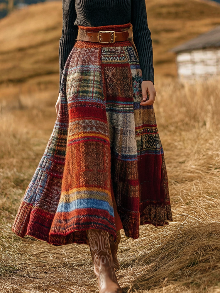 Vintage Boho Colorful Patchwork Cozy Knit Leggings