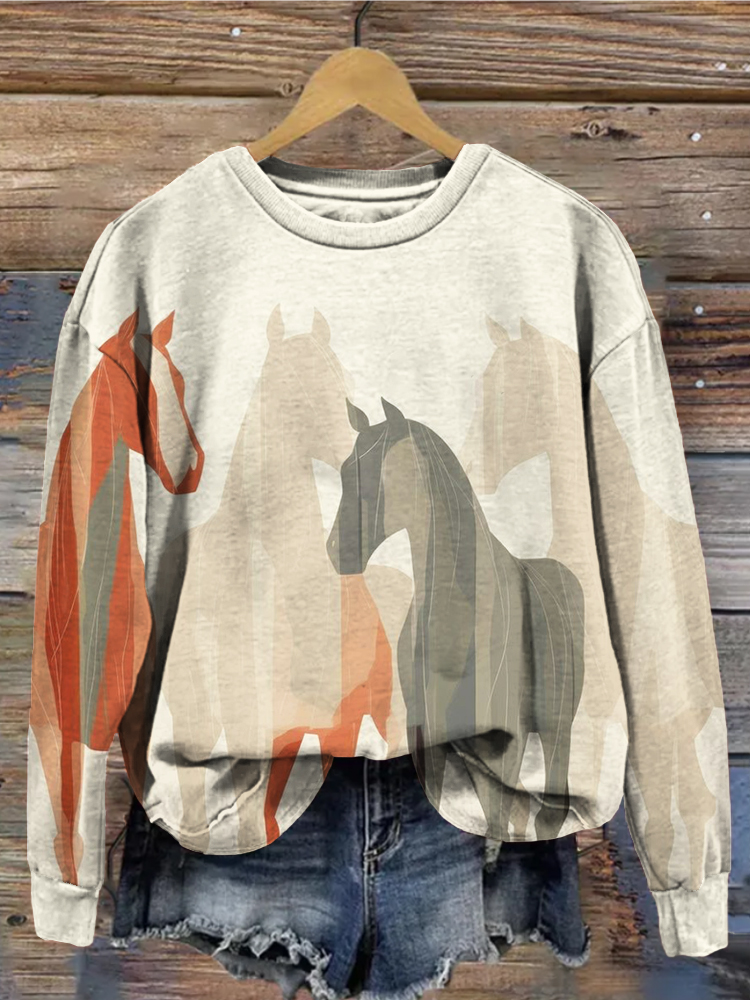 Vintage Western Horses Art Washed Comfy Sweatshirt