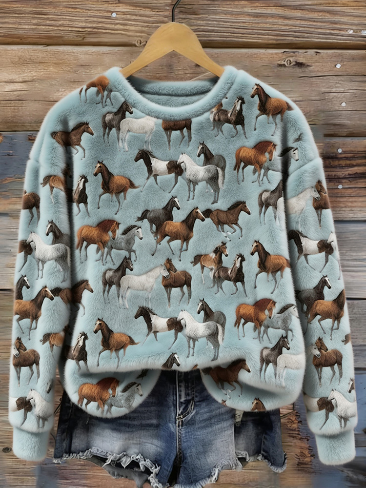 Vintage Western Wild Horses Art Cozy Plush Sweatshirt