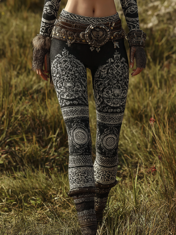 Western Style Women's Retro Ethnic Style Knitted Wool Pants