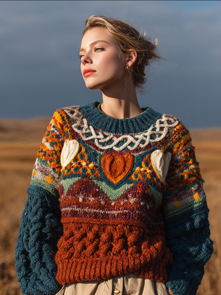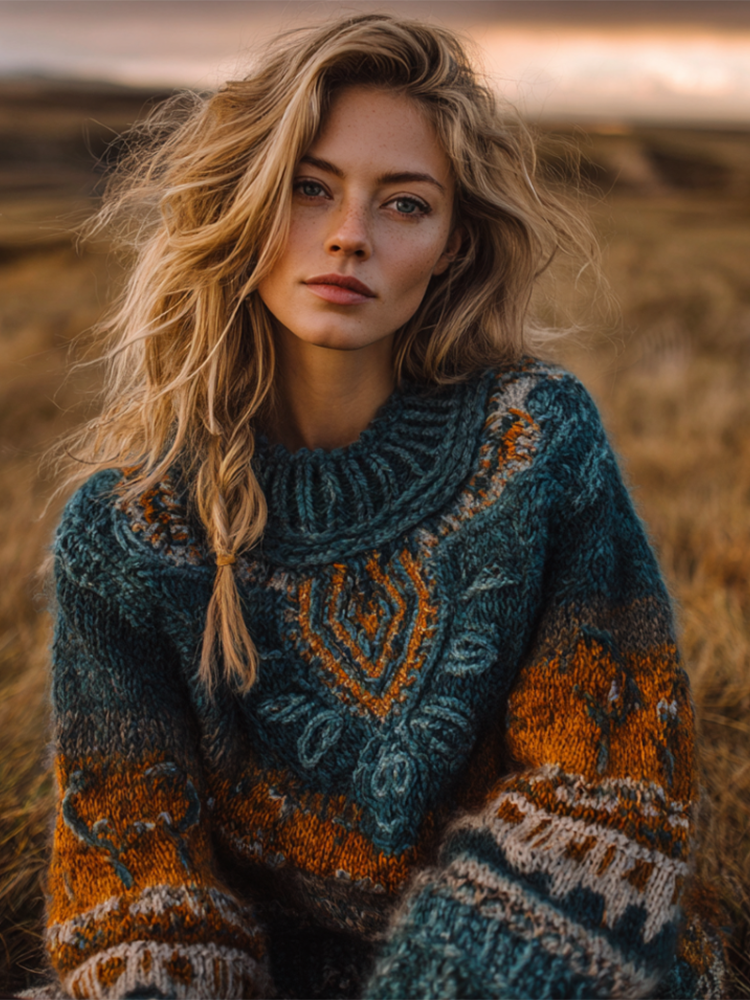 Western Style Women's Autumn And Winter Round Neck Retro Rural British Style Knitted Sweater