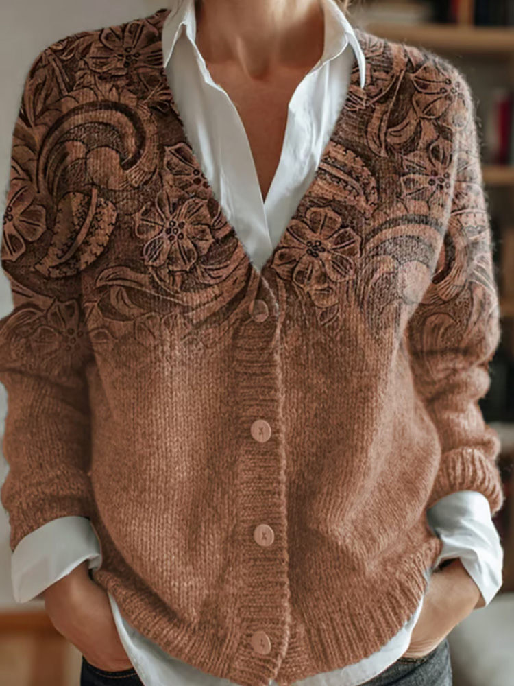 Women's Three-dimensional Multi-colored Plant-themed Casual Round-neck Sweater