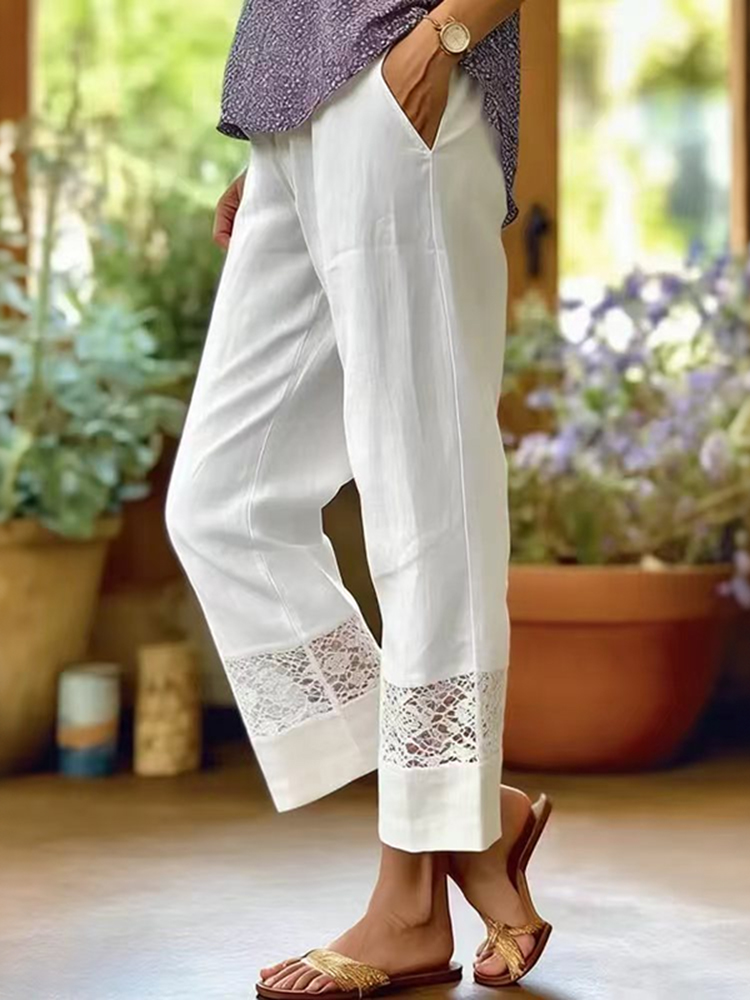 Casual Loose Spliced lace Solid Color Ninth Pants