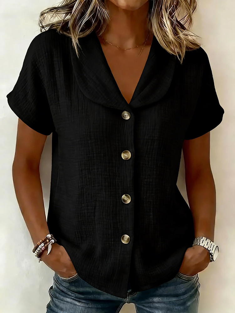Women's Solid Color Collor Button Down Blend Loose T-shirt