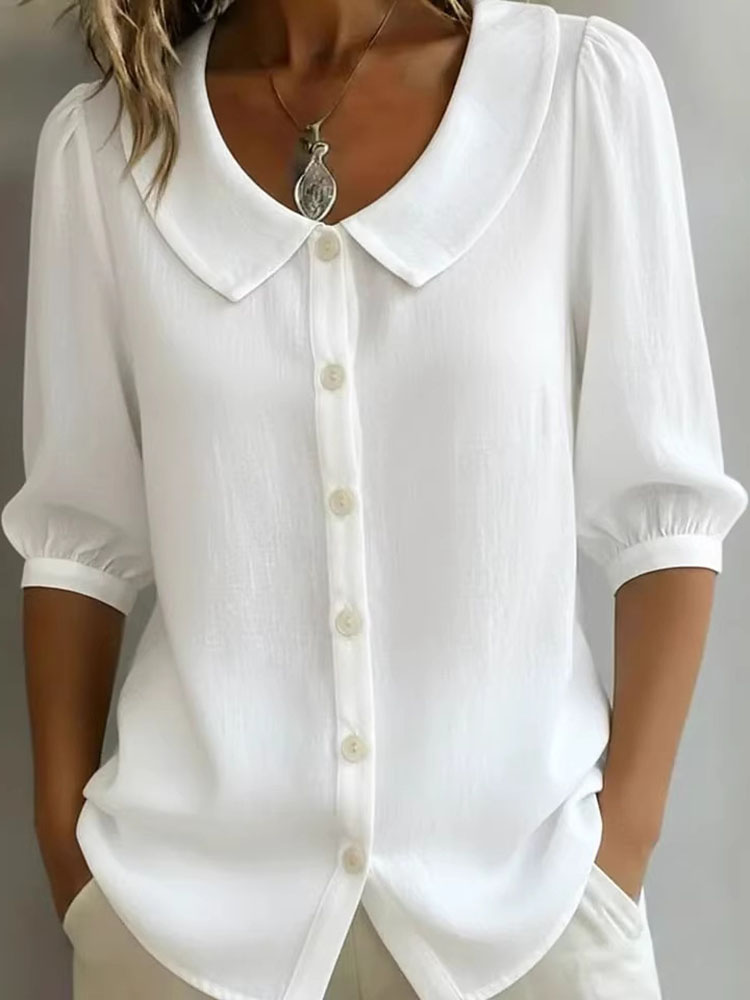Women's Puff Sleeve Doll Collar Button-up Shirt