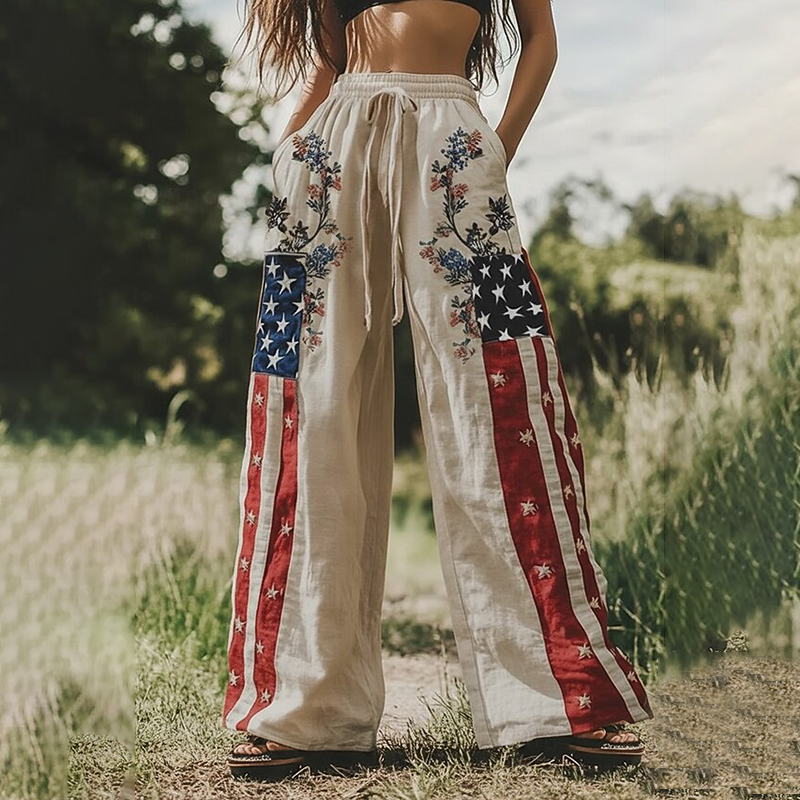 Pattern: US Flag Patriotic America's 250th Anniversary With Flowers