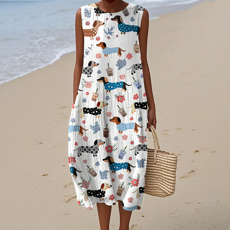 Pattern: Cute Dachshund And Floral Print